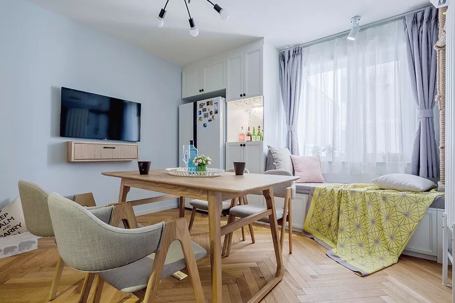 ▲像这种在房间转角规划一个卡座,既能做飘窗还能做成小餐厅,对于小户型而言,是一款非常棒的规划。