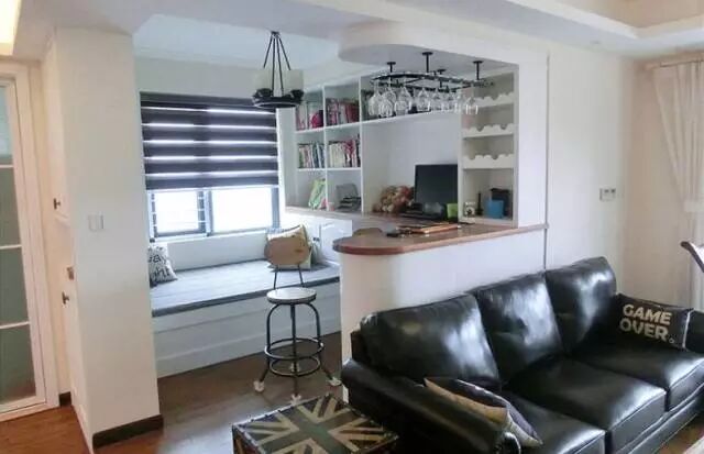 ▲以吧台做隔断,楼房装修的时候。将飘窗区也能够作为会客区的一部分,收纳休闲两不误。