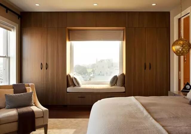 ▲飘窗衣柜一体规划,收纳性能杆杠的。