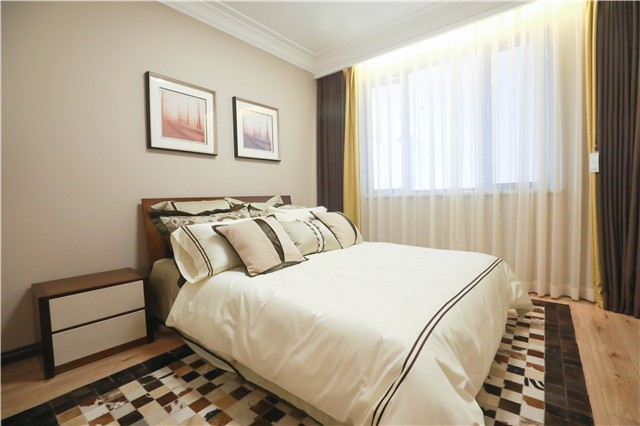 主卧:静谧、舒适的空间,最易使人放松休憩。柔和的暖光温暖的色调,营造出舒适宁静的氛围,让每个满脸倦容的归者,卸下疲惫,酣甜入梦!