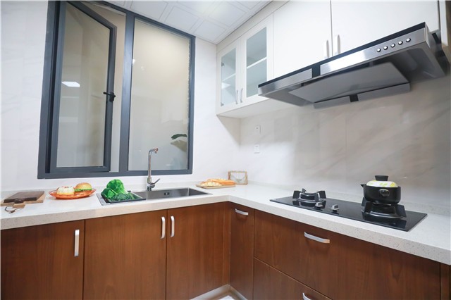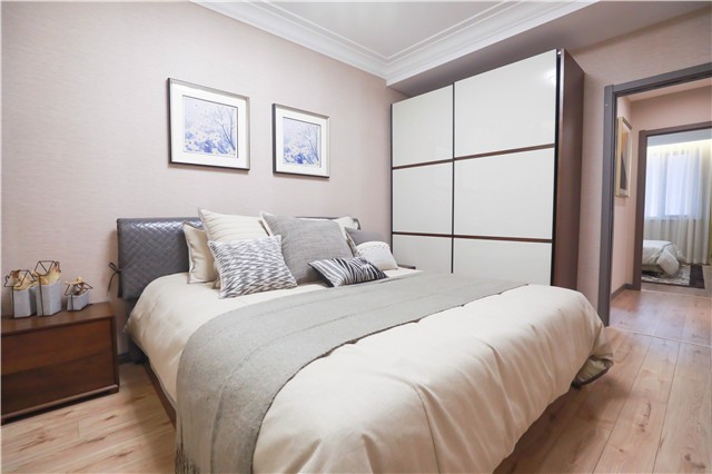 次卧:量身定制的衣柜,易打理的烤漆面板、简洁的腰线设计,迎合简约设计的理念。
