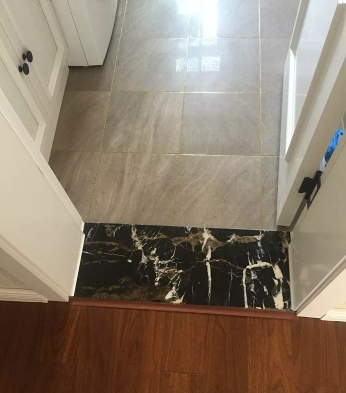 门槛石是两个空间的过渡,颜色没选好会丑得很“明显”。颜色略深于地板、地砖视觉效果更好,当然也别像黑金沙色系一样“黑成一坨”。
