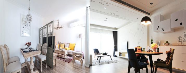 目前很多小户型楼盘都是这么设计,无论是装饰半隔断,还是推拉门全隔断,都会照成空间分割感,让住户感觉每个空间都比较狭小