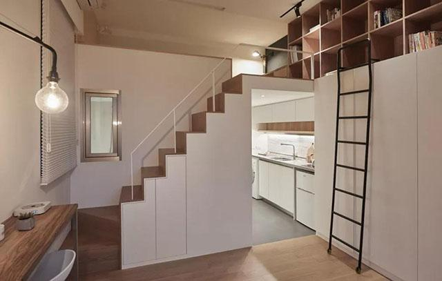 如果房间里有楼梯的存在,其下方空间也可以利用起来,设计成柜子,放书、饰品、鞋子等都行,而且楼梯踏板也可做成活动板,可以收纳好多东西的