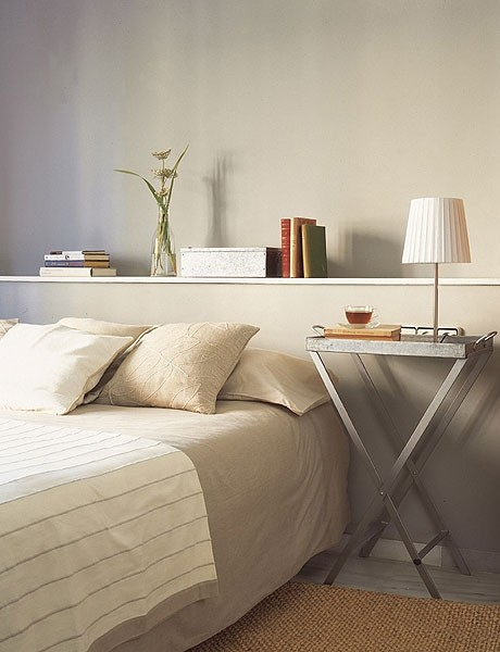 床头柜除了收纳的功能,存放于卧室的意义并不大。尤其对于小户型来说,本来空间就不大,再加上笨重占地的床头柜,让空间显得更加局促。因此,我们可以通过置物架、梯子等代替床头柜的功能,让整体搭配既灵活又拥有强大的收纳功能。