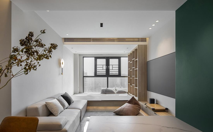 小户型不宜采用深色系的空间颜色,尤其是灰色、黑色,它会让人产生压迫感。因此,空间一般选择色彩明亮的色系,让空间看上去更开阔。