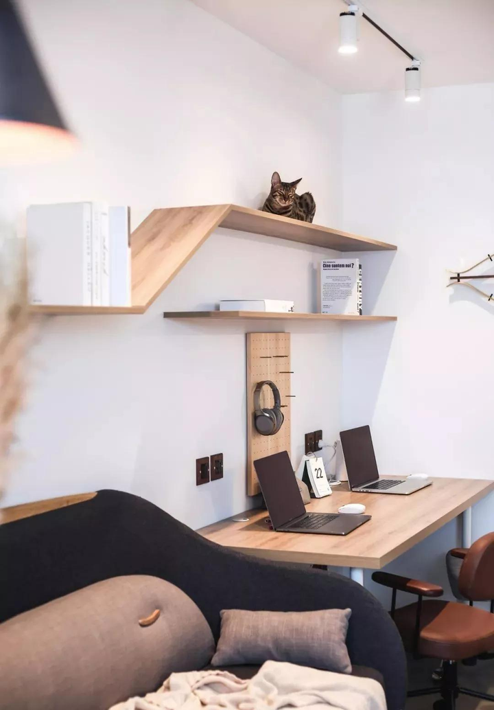 如将木板钉于墙壁面,即可收纳不少杂物。厨房和卫生间也可以利用墙壁悬挂一些五金挂件,可以收纳不少的生活用品,让各自的空间变得井然有序,当然五金挂件材质最好选择抗腐蚀、氧化效果好的。