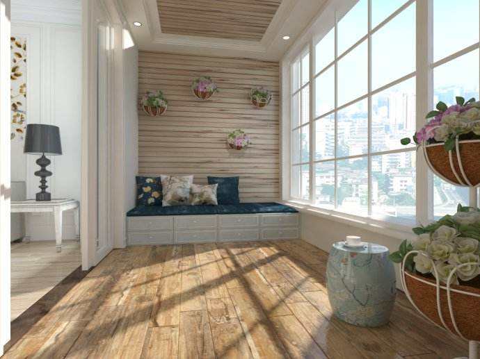 阳台装修要注意布局,所以装修设计时,为了能使视觉得到更好的延伸和扩展,地板可以和卧室、大厅保持一致,并且选用浅色的地板。