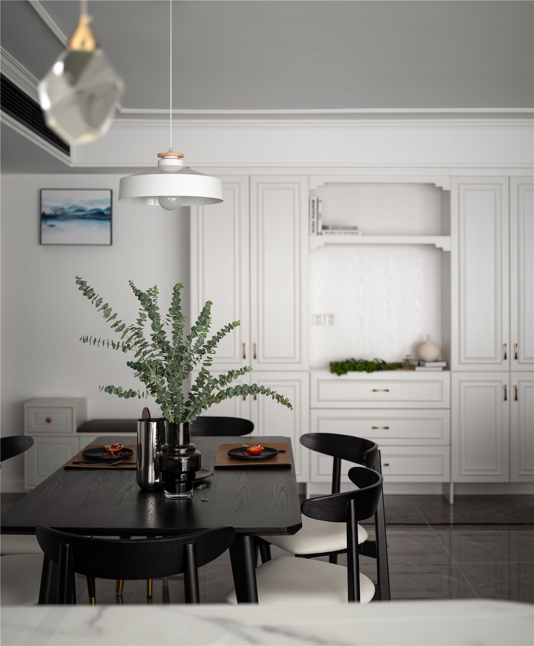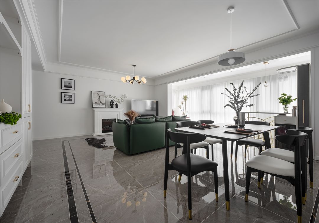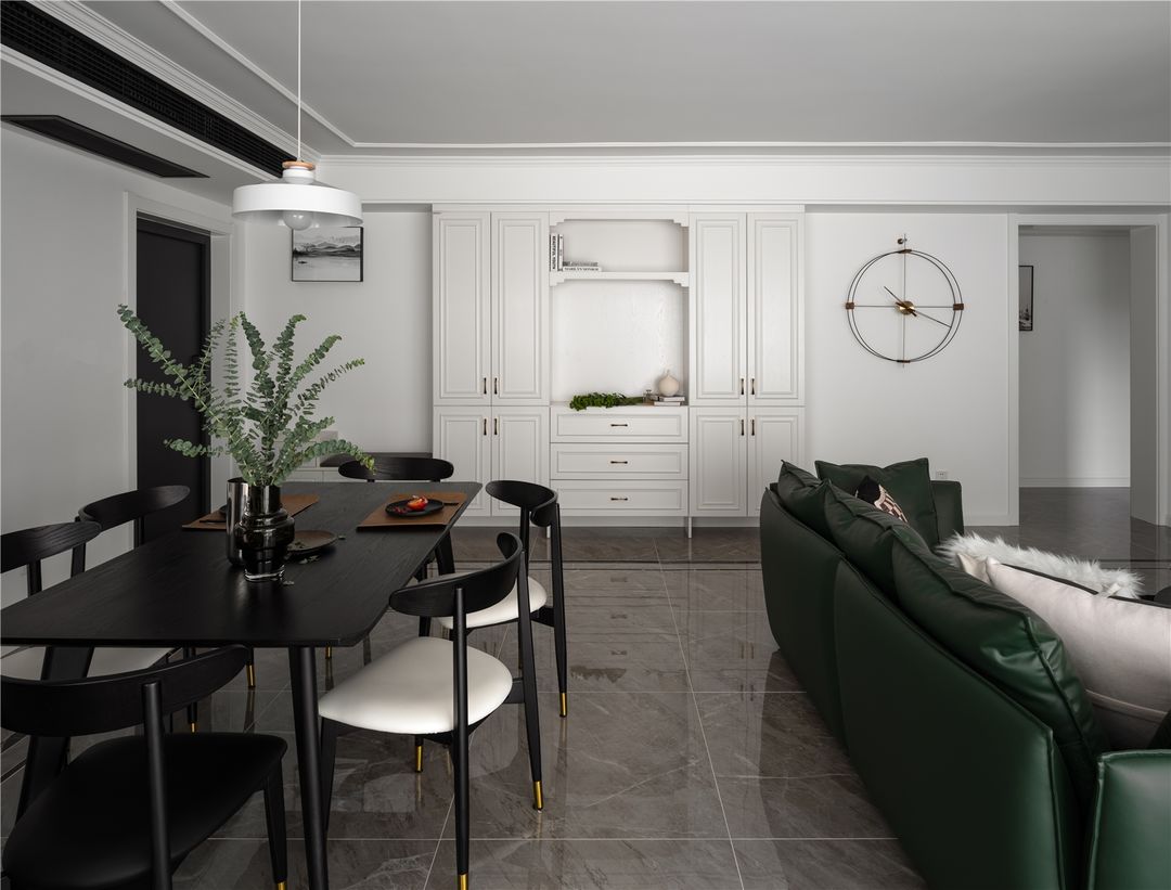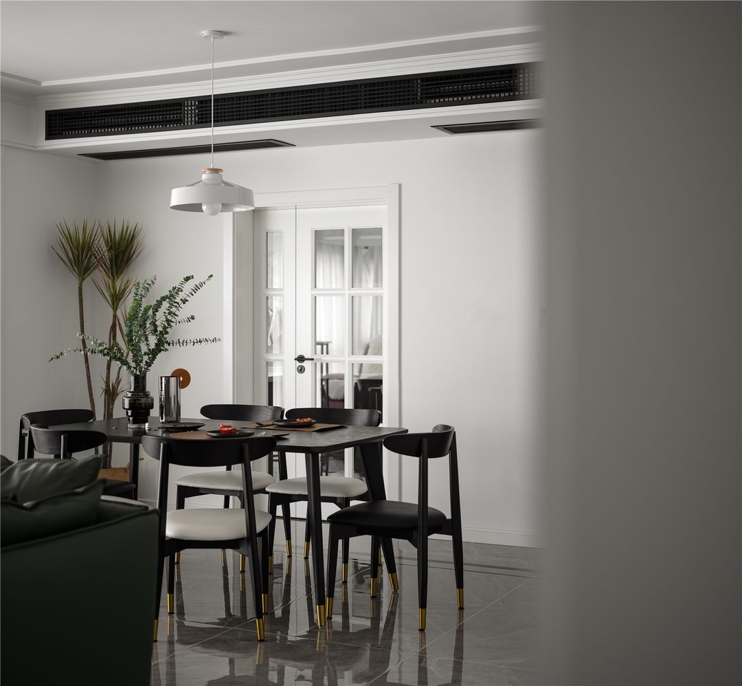 餐厅是经典的黑白搭配,在延续客厅风格的同时,更注重细节的打理,简易北欧风吊灯和别致餐具,为精致且舒适的生活增添别样情趣。花甲之年就应该享受生活,所以餐厅建立起一种安静而不失格调的生活状态必不可少。