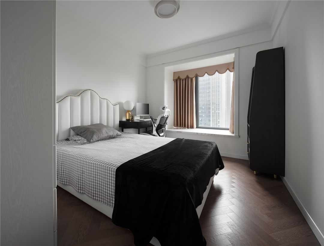 对于次卧屋主没有什么特别要求,简洁就好,极少有客人来居住,这里平时就是男主上上网看看新闻的地方,以及女主收纳的空间,利用率不高,但是防止子女偶尔回来居住,任然保留了卧室的形式未做任何改动。