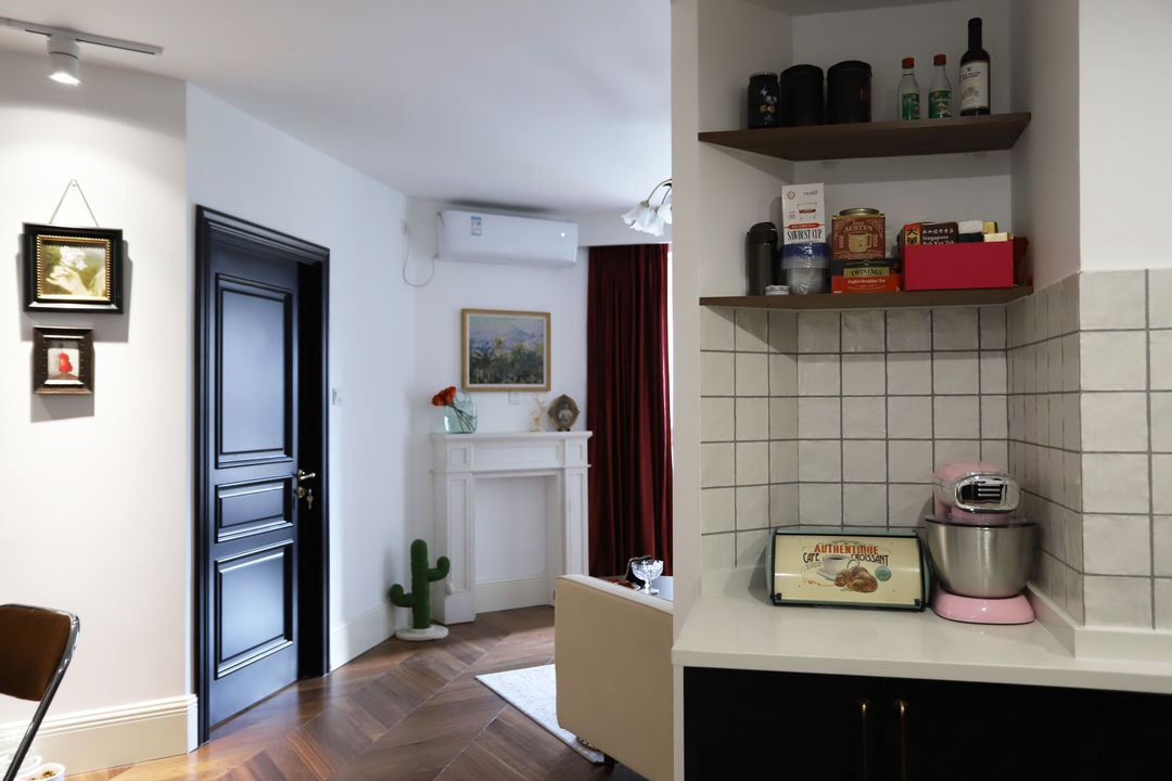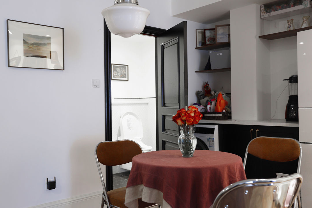 原格局,洗衣机只能放在卫生间或厨房,一个潮湿,一个油腻,都不是理想的选择。在重新规划卫生间区域后,就很好的解决了这个问题。独立出来的西吧台,用来集中安置各类生活电器。