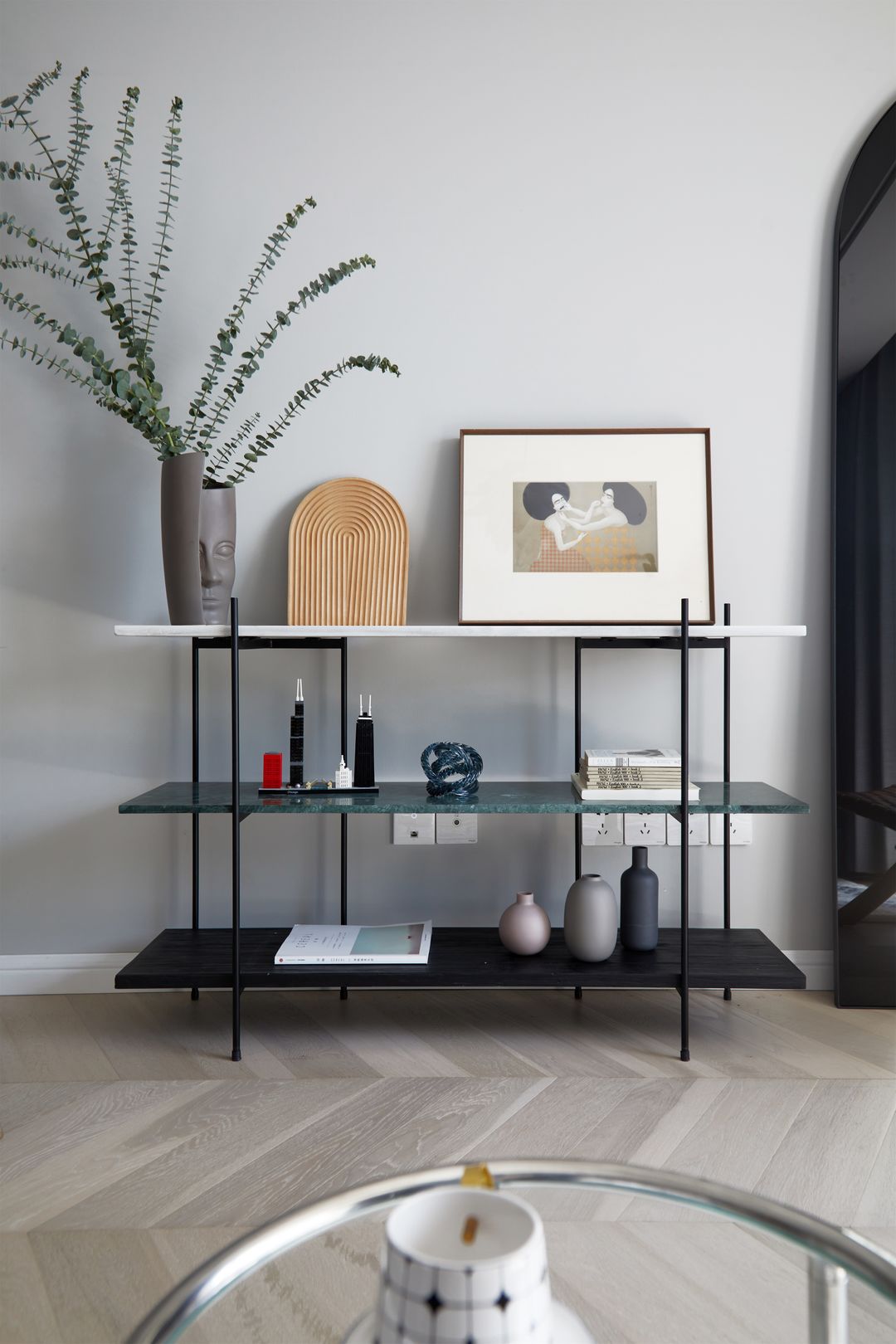 冷色墙面与暖色画作的平衡更是直接点题了客户的诉求——“温柔而又不失冷冽、能让人感到舒适而沉静”。颜色浓烈的装饰画成为了空间的亮点。