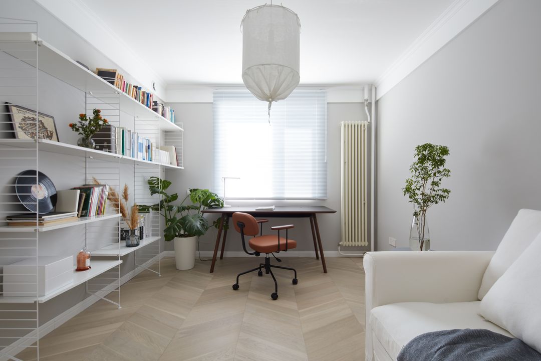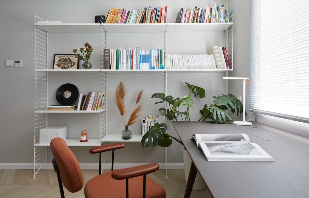 我们采用了string体系书架,这套书架系统不仅组合自由,且容量极大,白色金属材质和五颜六色的书籍搭配起来兼容力十足,经典又时髦!