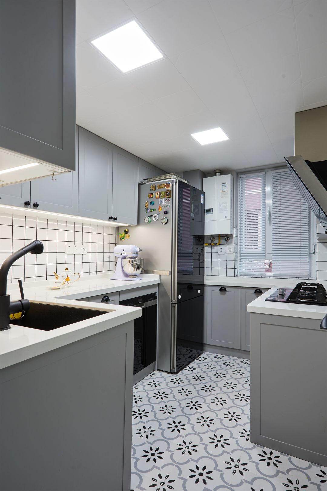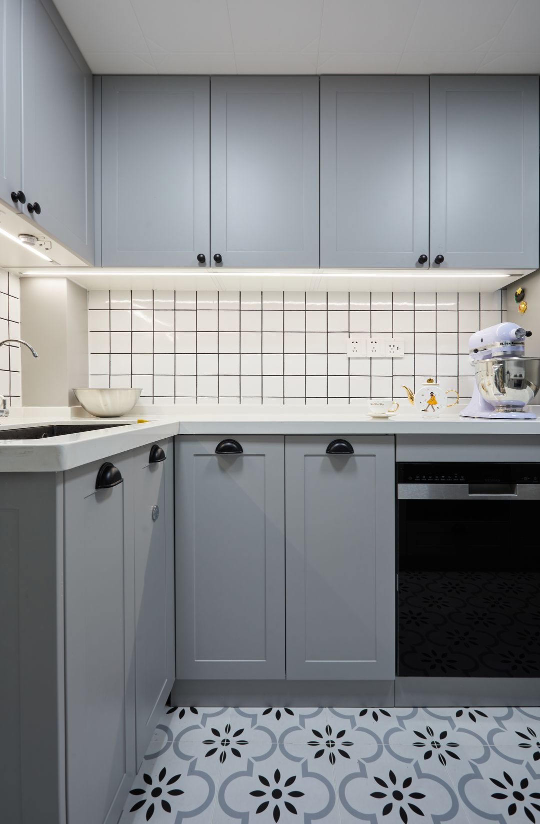 灰色系橱柜是整体色系的延伸,耐脏又高级。
