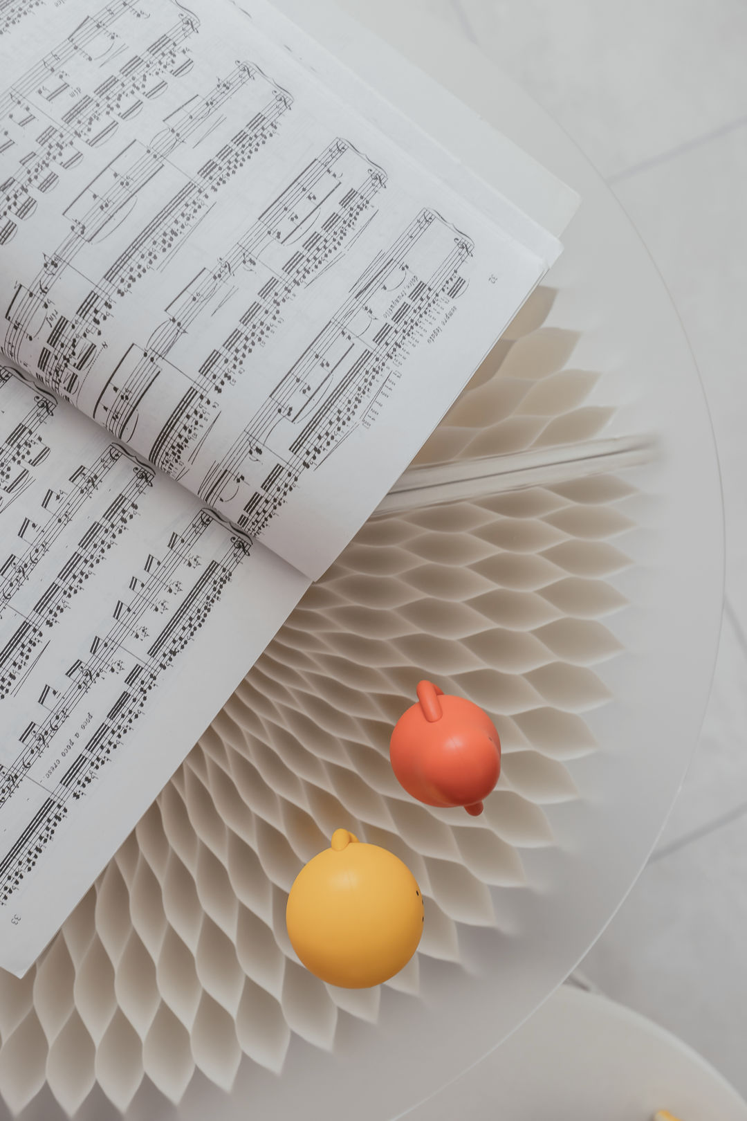 圆形茶几拥有轻盈的折纸造型,宛若层层绽放的白色花朵,在黑色音符的呼应下,呈现出美妙和谐的空间韵律。