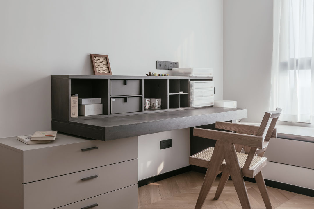 实木藤编椅、黑白实木书桌,都是极具设计感的存在,原始的肌理与天然的触感,流露出不加雕琢纯净温润的美感。