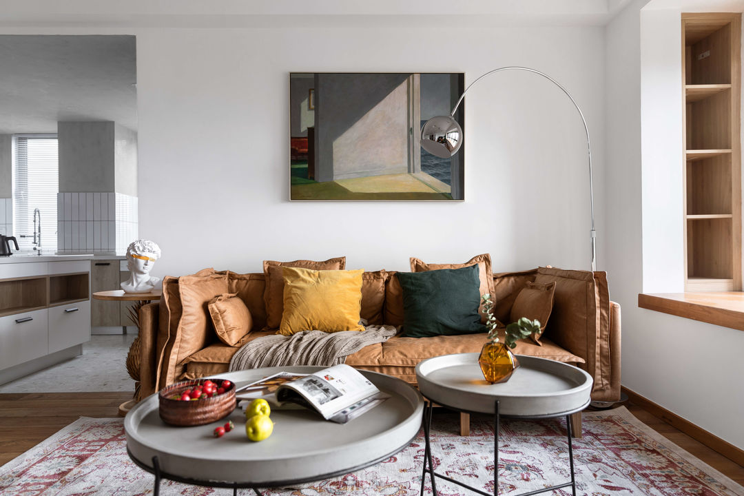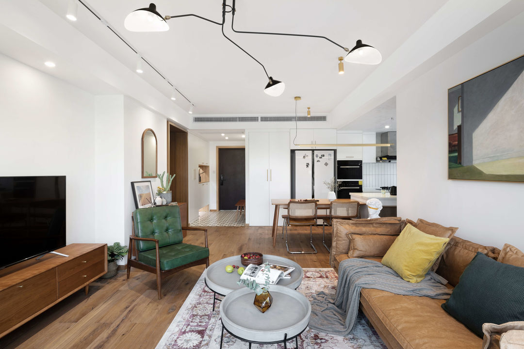 本案业主是一对年轻的夫妇,个性十足,平时喜欢喝咖啡,正巧设计师也咖啡成瘾,于是一拍即合。原户型有三个卫生间,针对两人的生活状态和情况,去掉了一个卫生间, 扩大了公共区域,延展厨房操作台,增加餐厅中岛岛台,餐厅与客厅的连接提升。