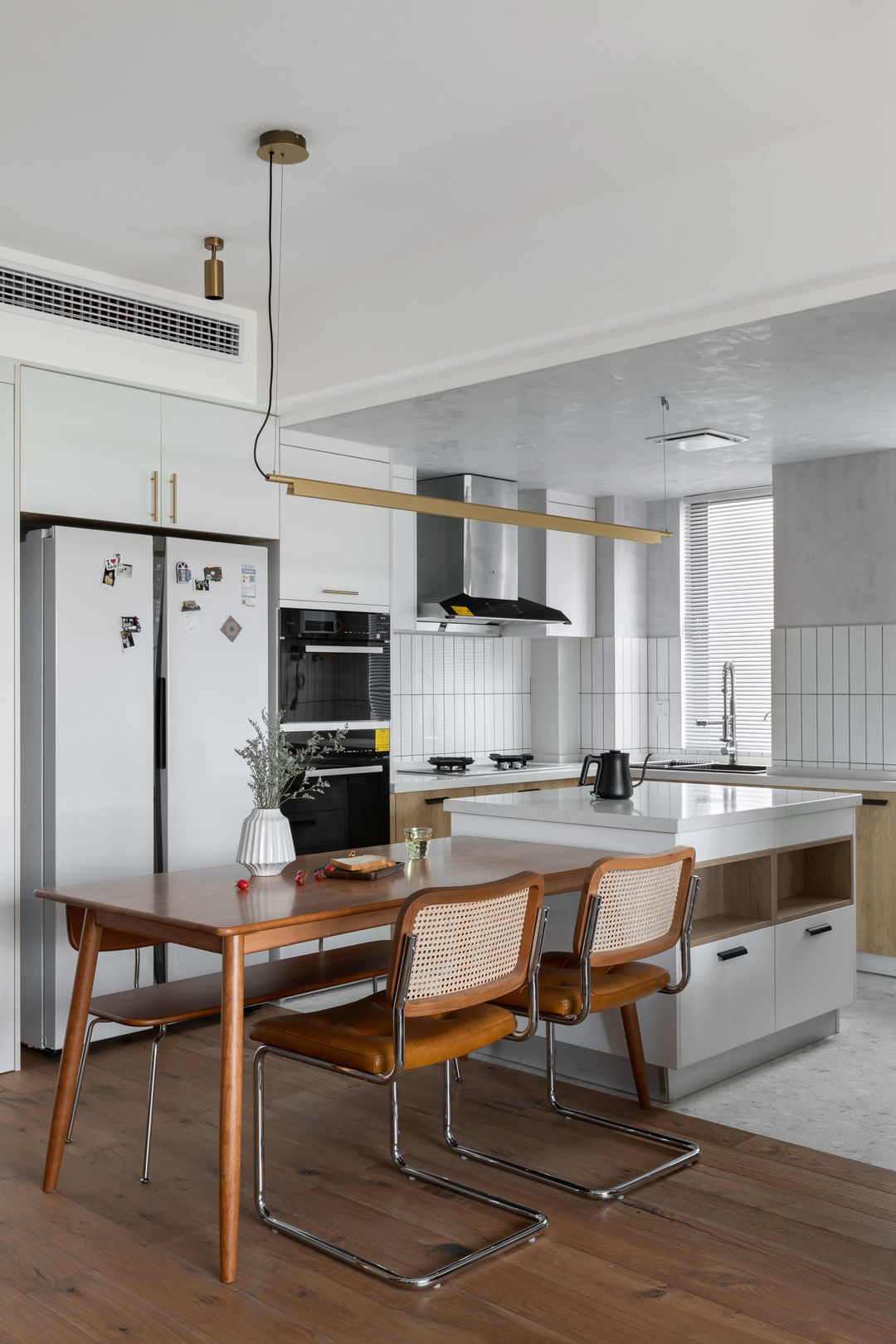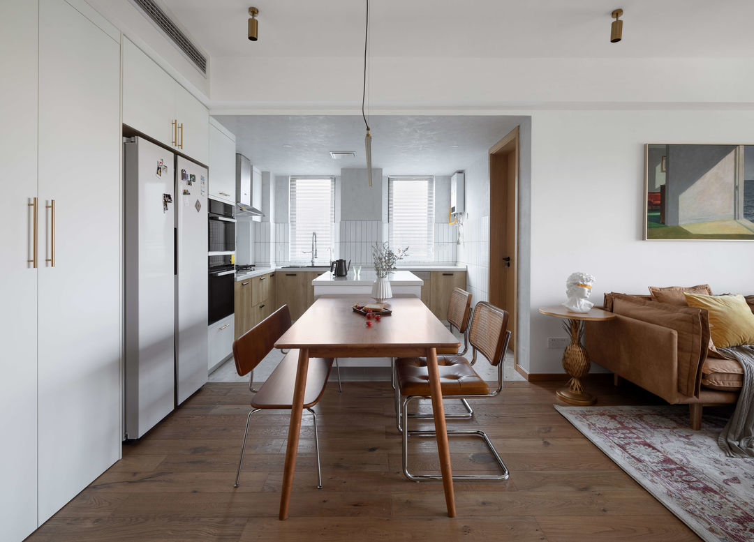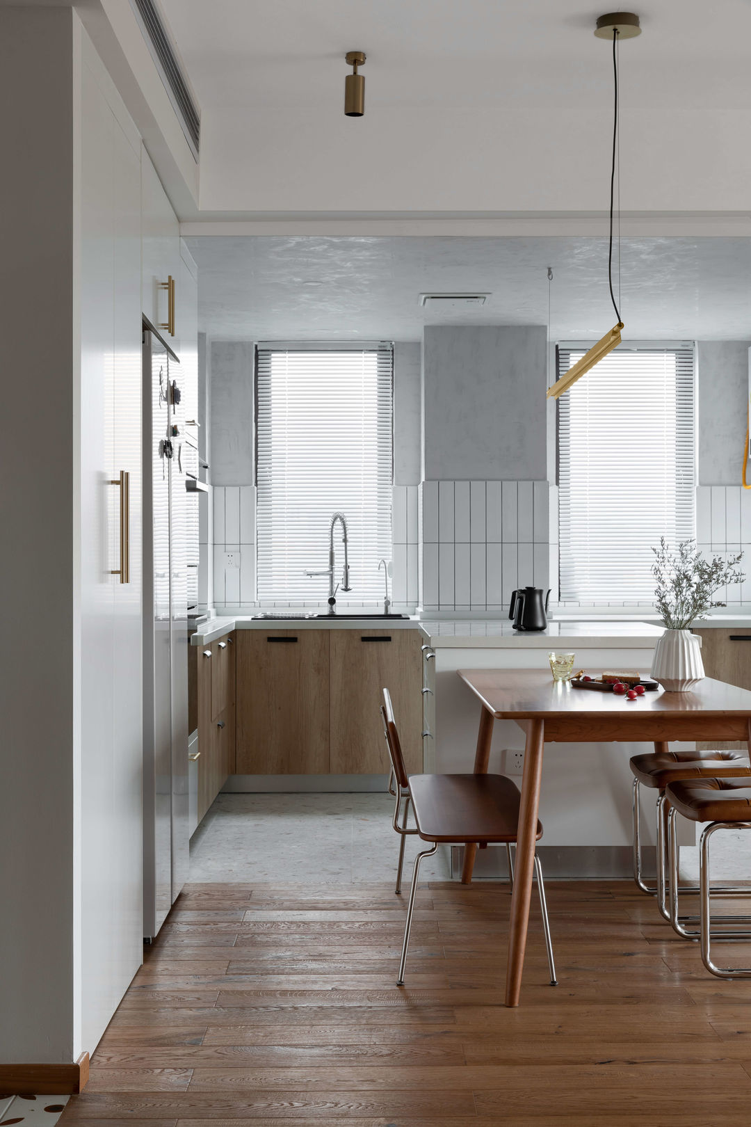 ▲餐厅对面是厨房,中间两扇窗可以让自然光透过厨房照进餐厅,美好的生活总能迎着和煦的日光开始