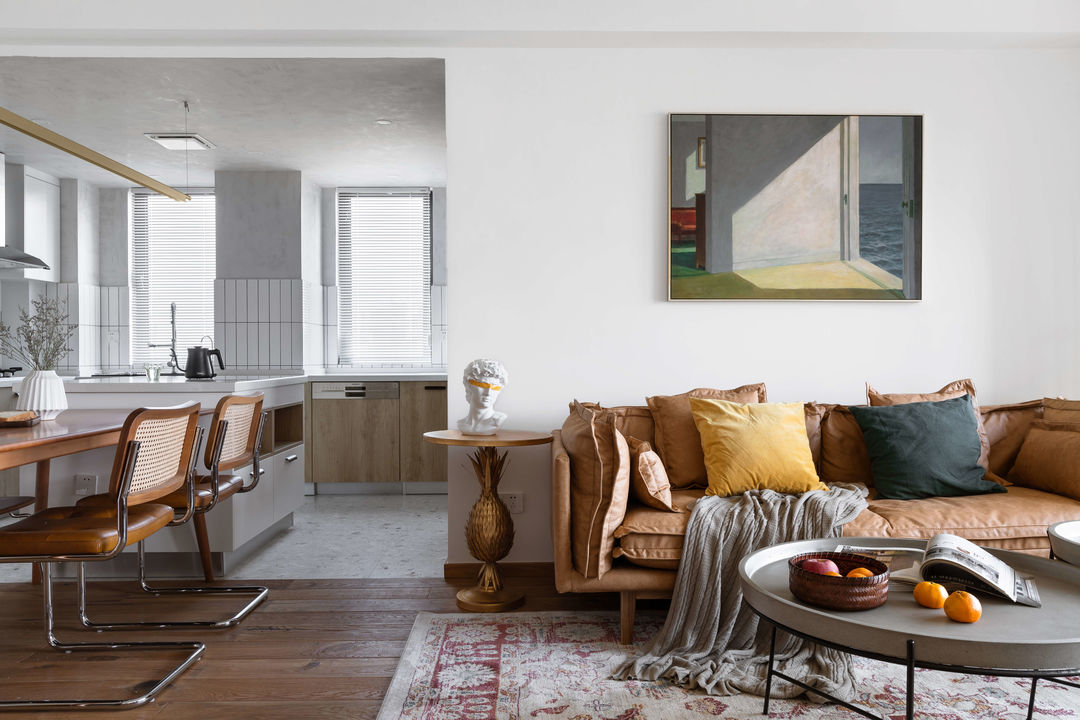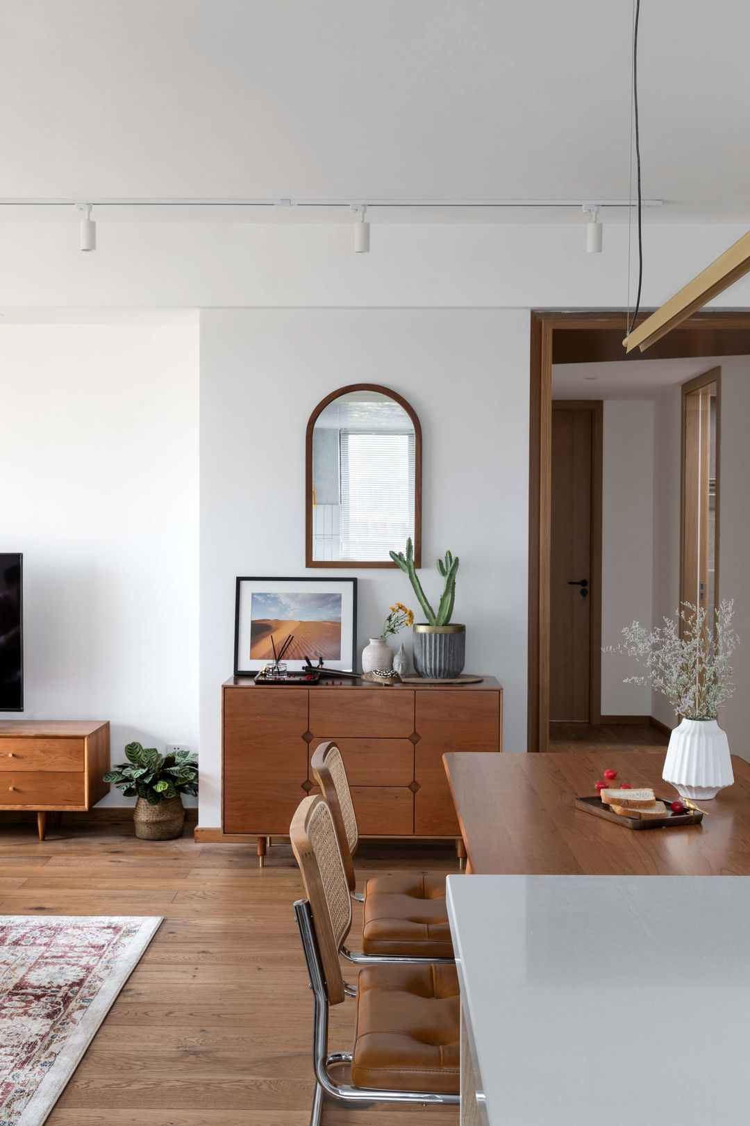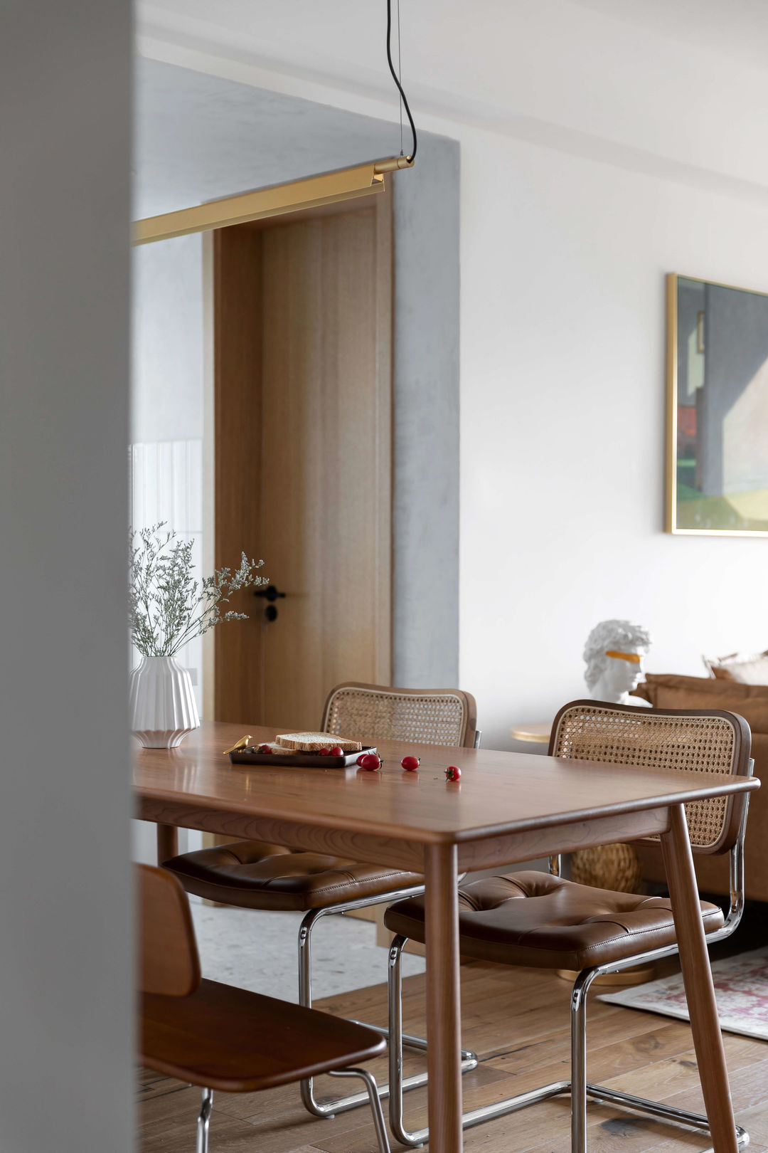 ▲餐厅对面是厨房,中间两扇窗可以让自然光透过厨房照进餐厅,美好的生活总能迎着和煦的日光开始