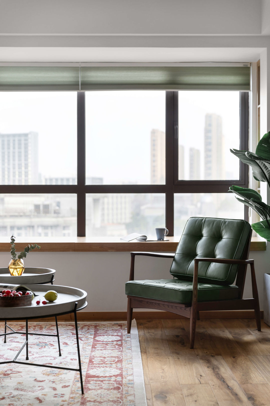 ▲窗旁的咖啡杯,墨绿色沙发,充满自然生机的花艺、绿植....