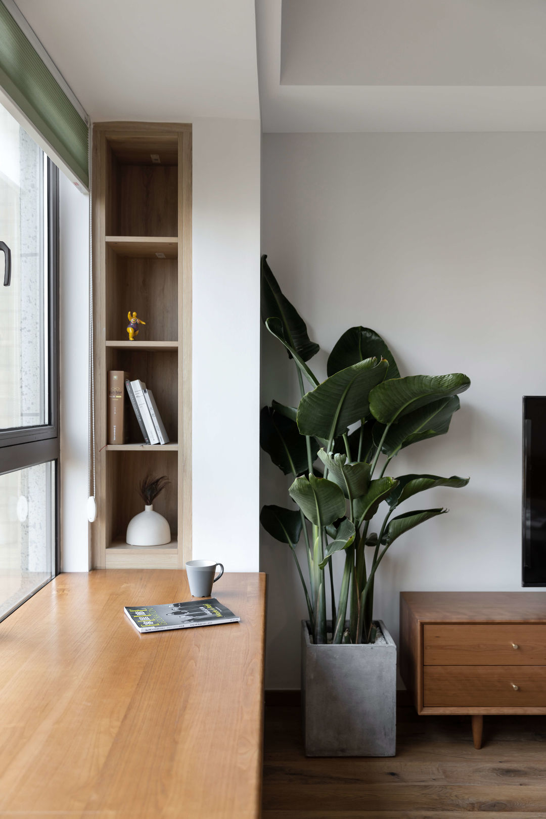 ▲温馨的原木搭配清新的绿植以及白色墙面和天花板,让空间保持色彩的平衡:设计师运用相对克制的手法,打造了一个清爽舒适又不失趣味的空间。