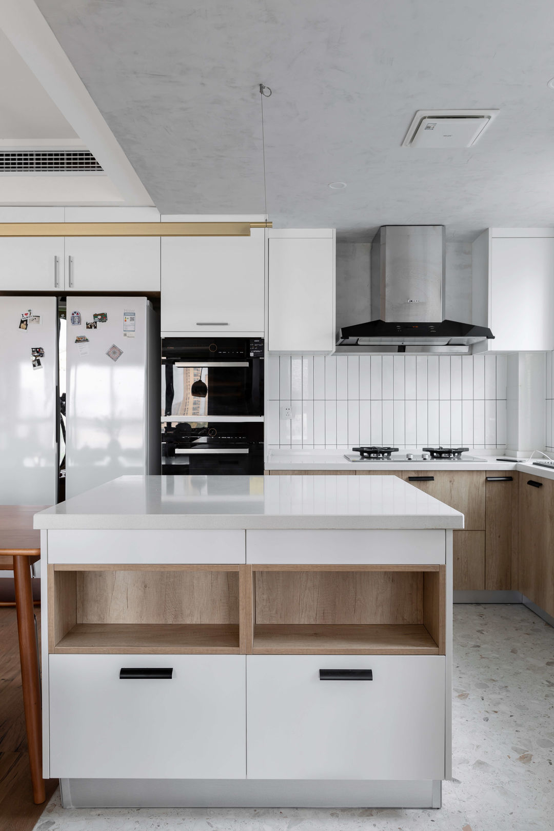 ▲开放式厨房以白色为主,在视觉上放大了空间;