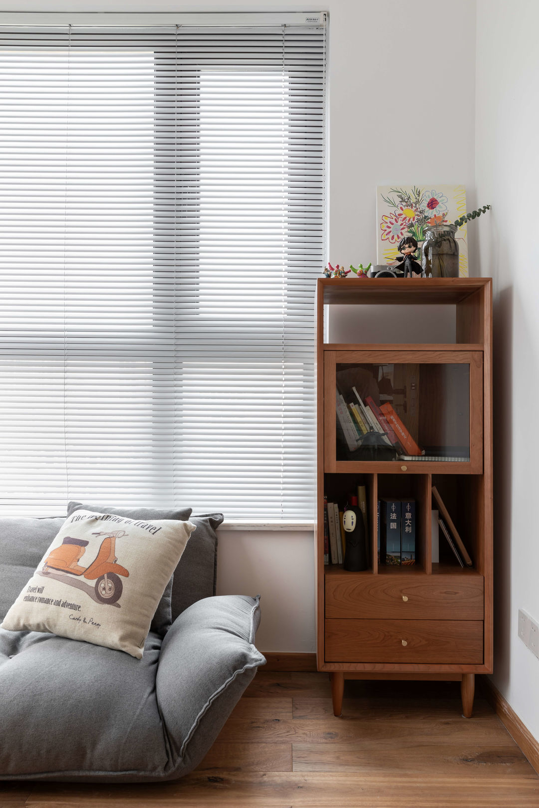 ▲飘窗上设计了开放书柜,方便主人随手放书