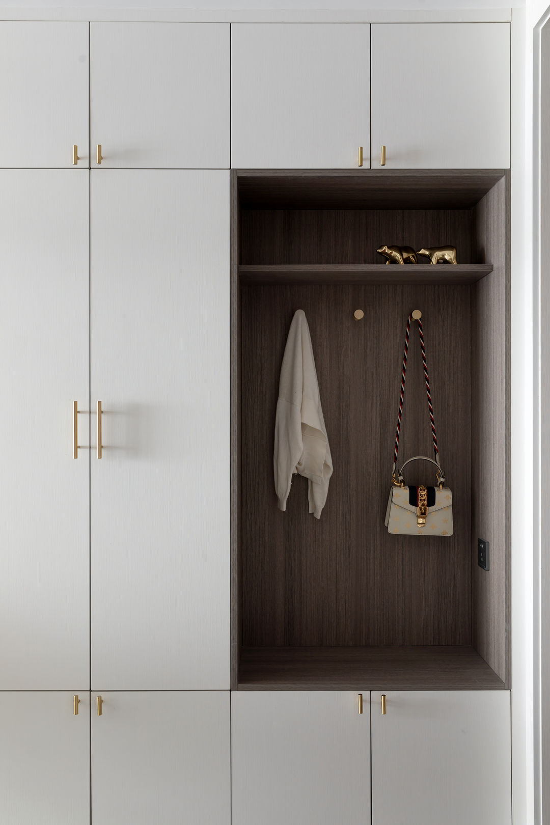 进门后右手边的玄关柜,换鞋、挂衣、储物都很方便。
