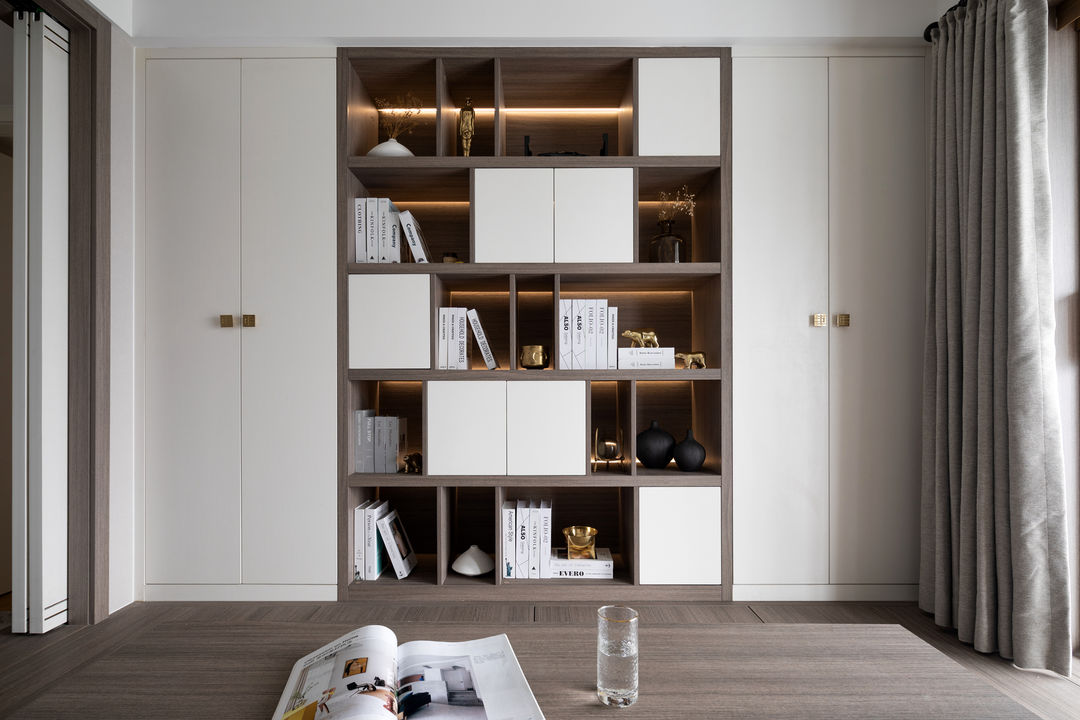 把电视柜和榻榻米房围成一个盒子,开、合、内、外,电视柜在不经意间发挥着强大的收纳功能。