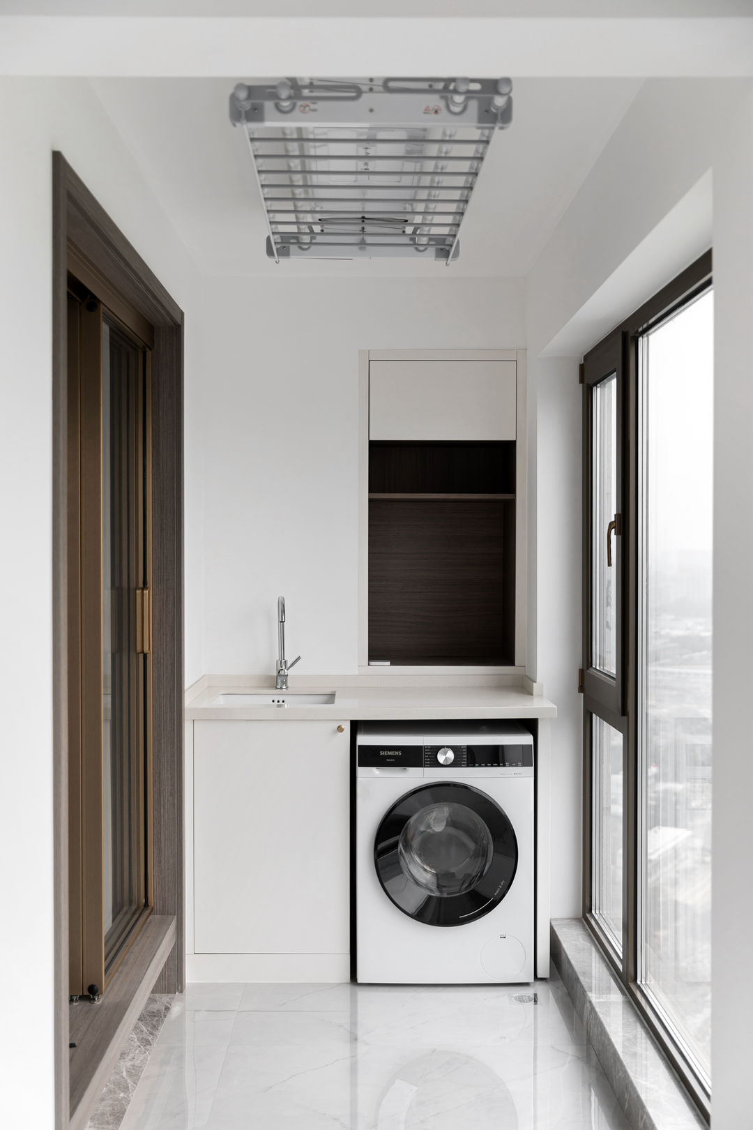 洗衣阳台,墙体做了储物格,拿取更加方便。