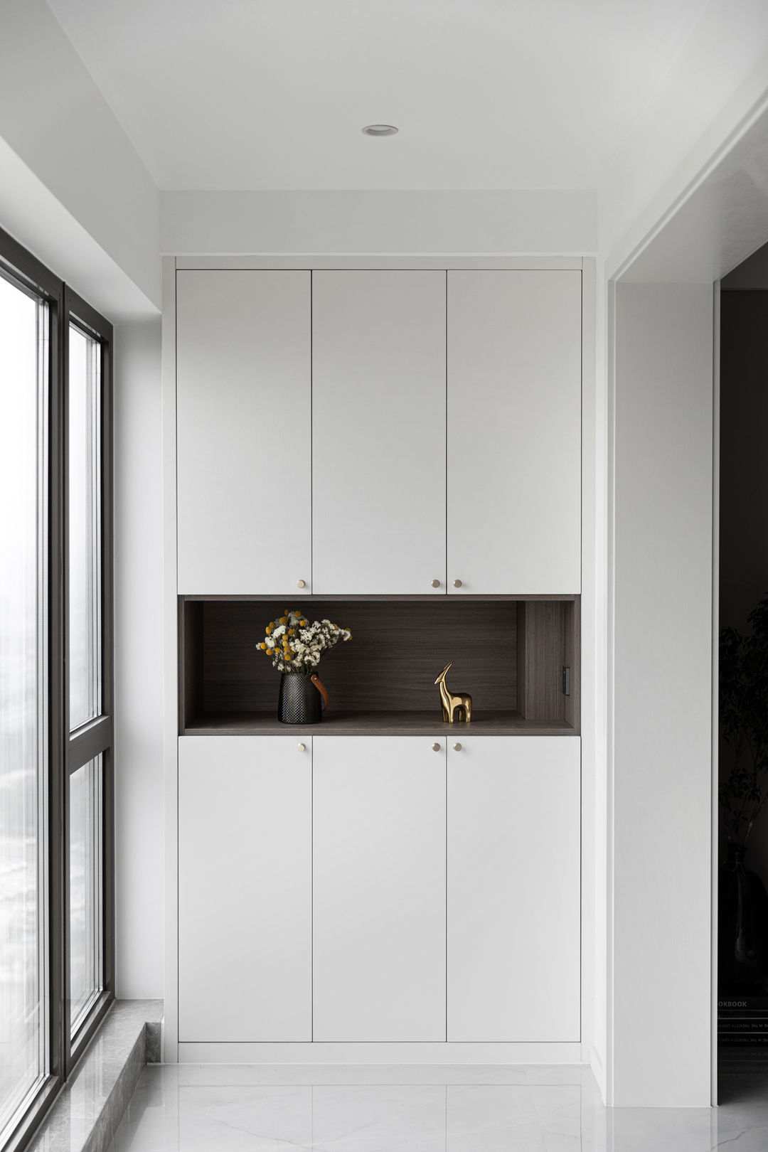 偏中式的移门设计,镶嵌了金属条更有质感。