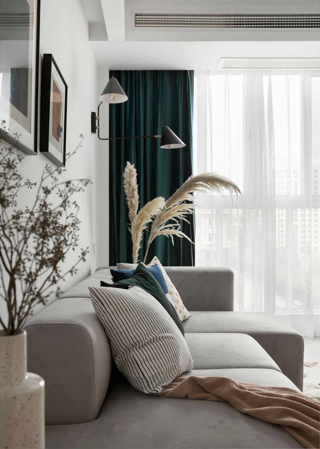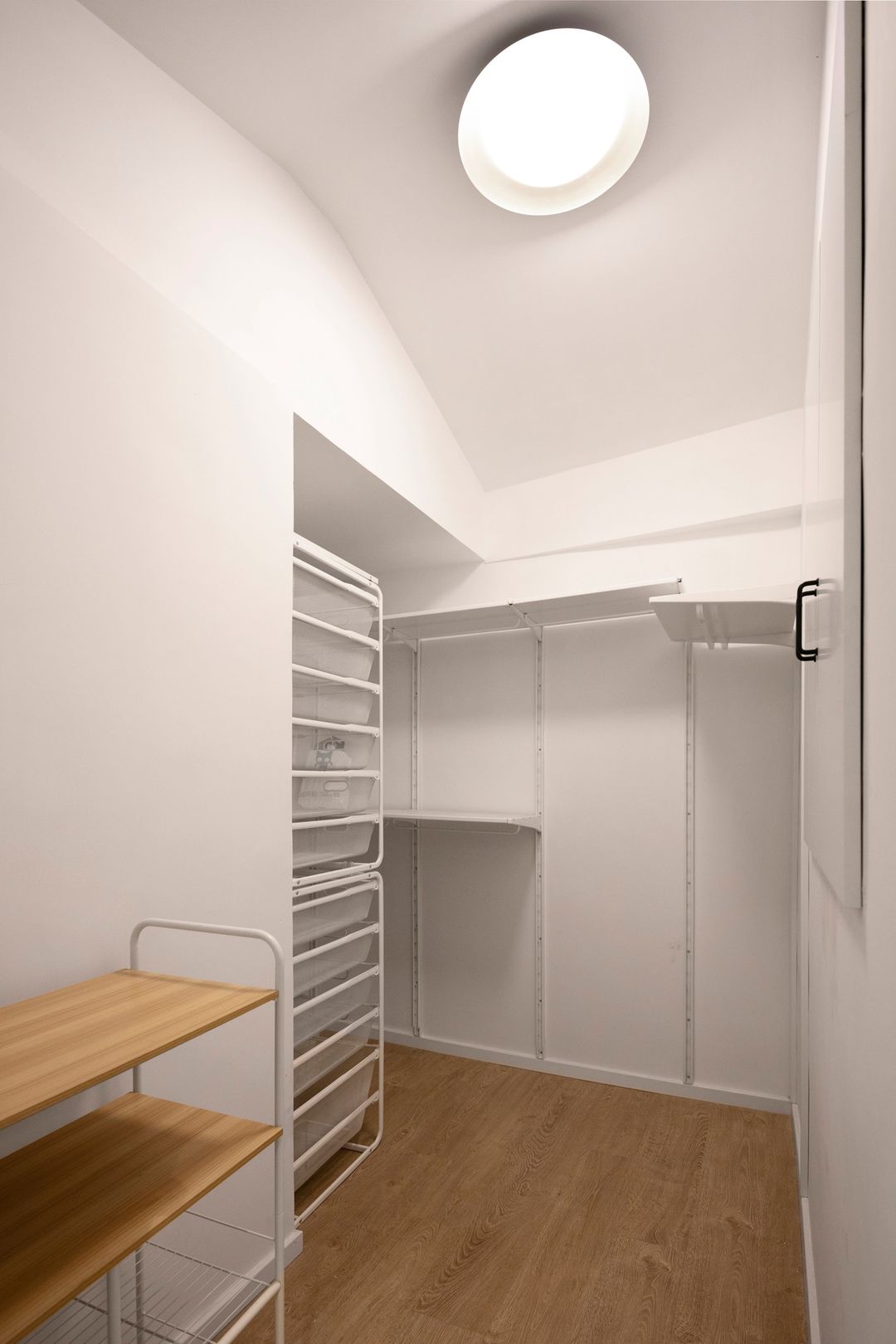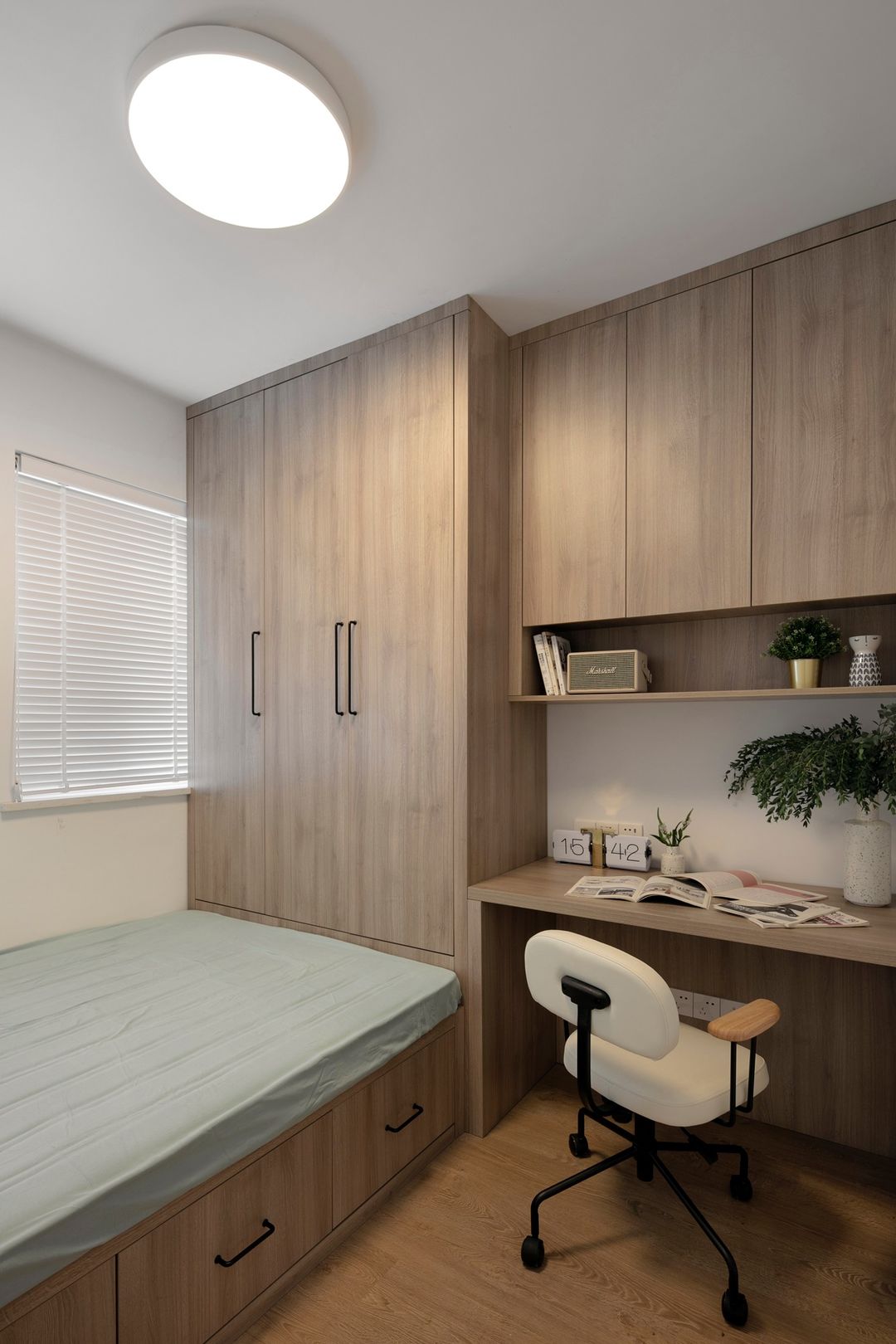 主卧一样有异形梁结构,用柜子弱化梁的位置,收纳美观一样可以同时拥有。