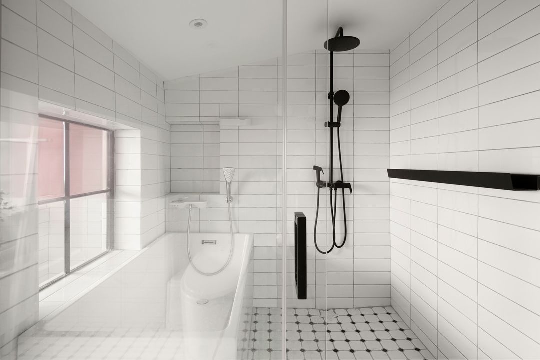 增加的卫生间的空间,同时容纳浴缸与淋浴,干湿分区后,采光也达到意外的效果。