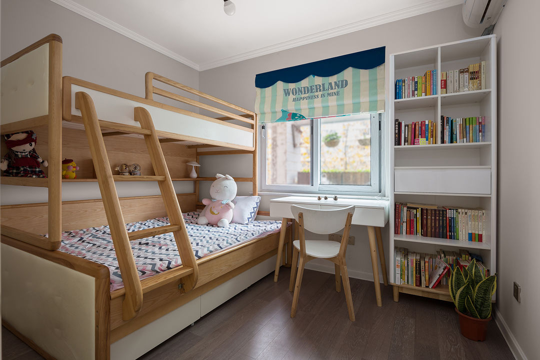 大女儿的房间主色延续了小女儿房间的主色家具也是一样。#原木色