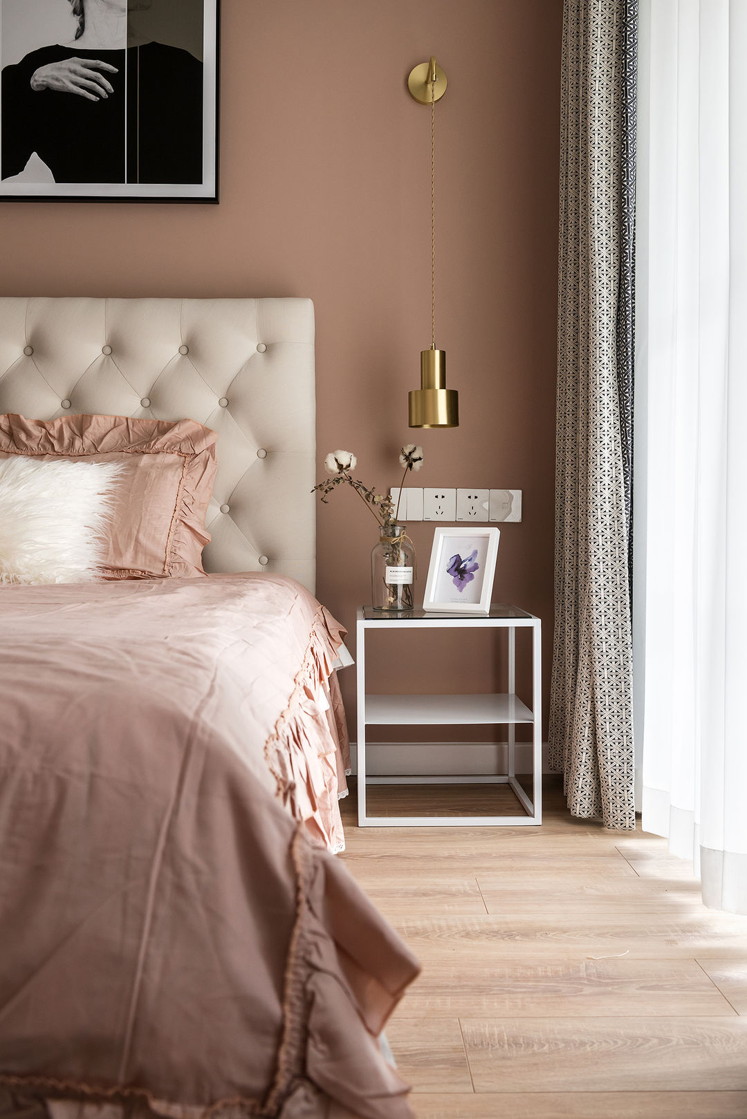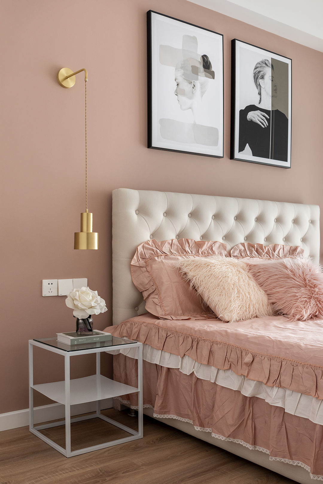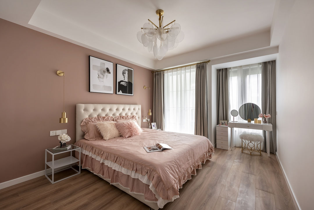 少女心的主卧,富有温度的家居陈设,这是大公主所憧憬的温暖小窝。金色的点缀,粉色与白色的衔接,让主卧更加温馨浪漫,让空间更加协调。