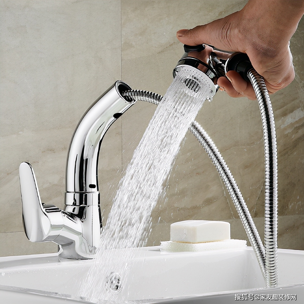没有抽拉式水龙头的时候在淋浴区洗头非常的不方便,鞋子、裤子都会被水溅湿,有一个抽拉式水龙头的话就能在台盆这里洗头,非常的方便,幸福感提升了一个档次~(台盆慎选黑色!)