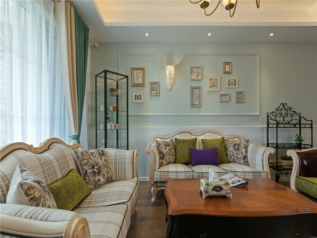 3、美式风格:美式风格一个大的特点就是大气随性,这种风格的客厅给人的感觉是宽敞而又有历史厚重的感觉,而卧室就会比较温馨,主要是突出它的功能性以及舒适性,另外还会使用到很多的布艺来布置。
