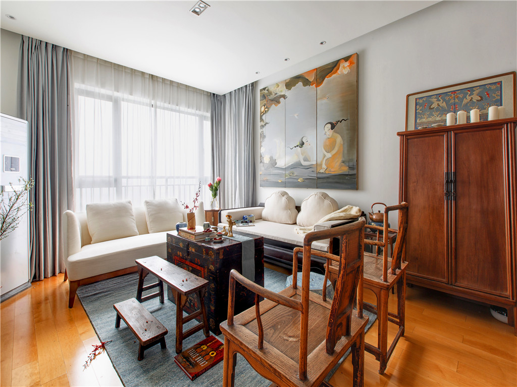 铺客厅木地板的时候也有小诀窍,顺着空间中的长轴方向铺排,板材的线条会让空间感仿佛无限延伸。在视觉上也是有放大的效果。
