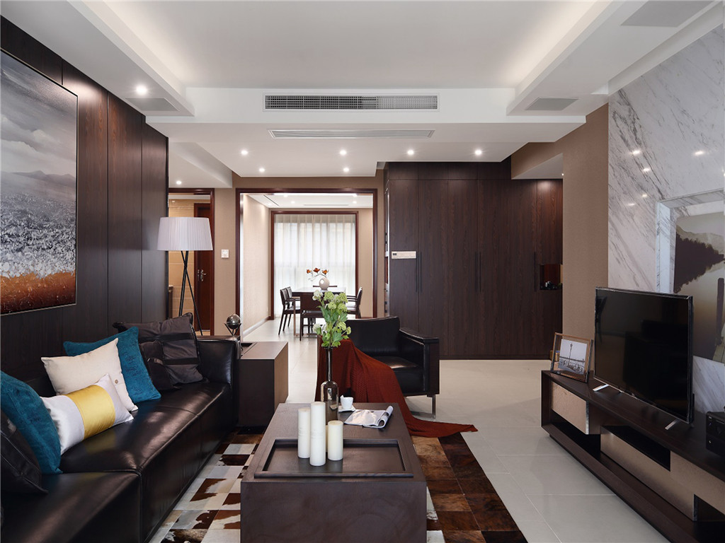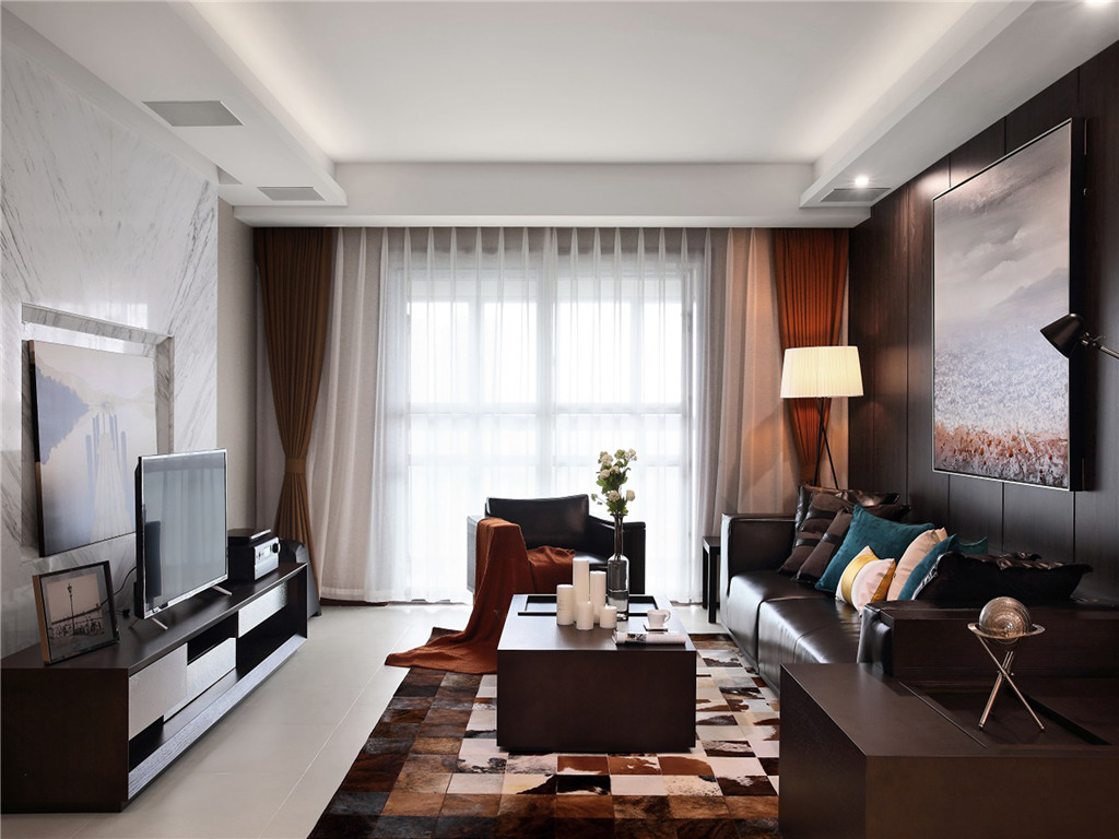 通常在客厅中会放置较低物品,因此我们在客厅的颜色上要选择那些包容性比较强的颜色,选择能够让客厅背景墙、窗帘协调搭配的色彩,这样让人看上去也更加舒适。