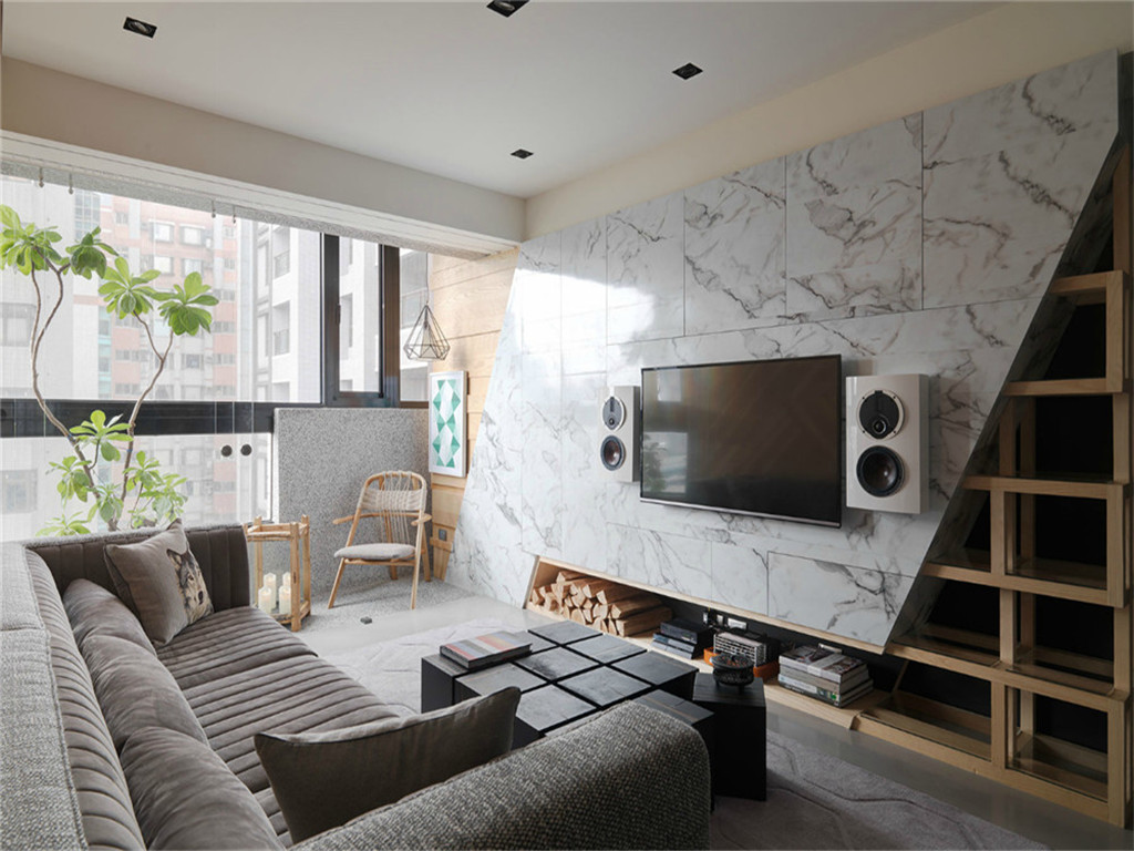 井格式吊顶是利用井字梁因形利导或为了顶面的造型所制作的假格梁的一种吊顶形式。灯具以及单层或多种装饰线条进行装饰,丰富天花的造型或对居室进行合理分区。