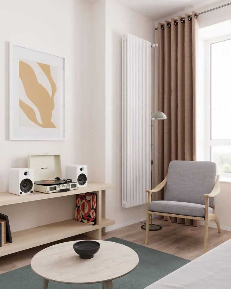 这套一室一厅的公寓共 68㎡,整个空间使用了大量的木元素,并用莫兰迪色进行点缀,看起来温暖目舒适.