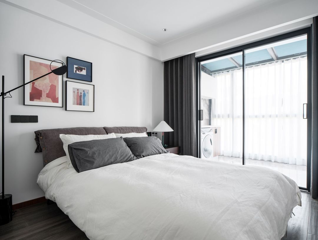 主卧门做一门到顶设计,没有做上门套,使主卧门更好的融入背景墙。地面灰色大理石瓷砖与整体空间融洽和谐。