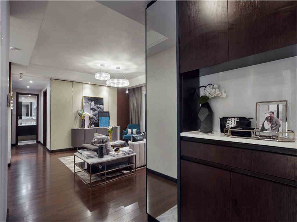 整面墙均做造型的,我们通常称之为:“整墙板”。整墙板一般用来做背景墙,隐藏门比较多一些。也有的为了整体效果更具品质,也会整屋做整墙板。整墙板的构成大概分为三大部分。一组常见的完整护墙板可以分别由“造型饰面板”、“顶线”、“踢脚线”组成。当然,根据不同风格和造型要求,整墙板的结构亦可以不仅仅局限在这三大部分。而对于整墙板而言,其设计的常见基本特点就是尽量实现“左右对称”。