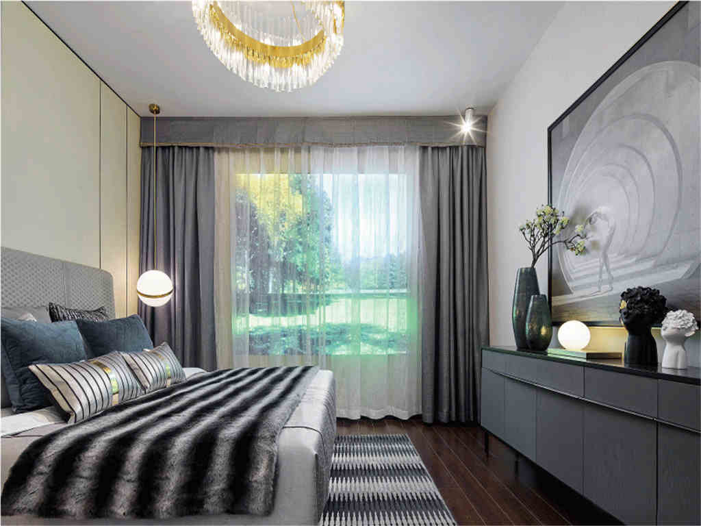 和普通整墙板或墙裙不同的是,其芯板的位置通常不做木饰面,即墙板边框和压线,中间则是其它装饰材料代替的,我们通常称之为“中空墙板”。中空墙板的设计方法与整墙板或墙裙基本一致,只是整体感觉上会比有芯板的护墙板显得更加通透且整体设计富有节奏感,也可达到其它效果和功能性目的。例如,在一个封闭,且对音质方面有较多要求的影音室,其中空墙板芯板位置即可为软包所替代。这样不仅达到更具有气质的美观效果,而且可以帮助吸音,使声音在一个封闭的空间内减少回荡扰乱听觉,也减少噪音传到房间以外而对外界形成干扰。