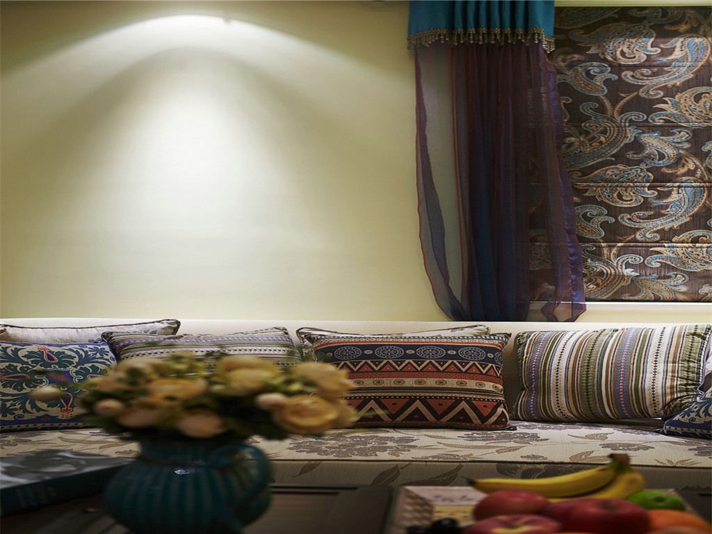 客厅是主人向访客展示的地方。客厅颜色应充分体现主人的特点。如:红、黄、紫等色彩。地面可以采用原木色,顶部采用金黄色灯饰及光线,搭配华丽堂皇的效果。